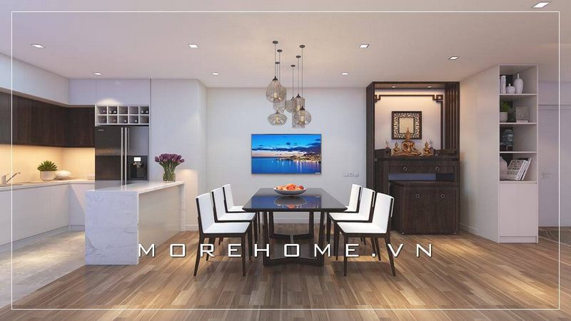 Mẫu bàn thờ chung cư hiện đại với nguyên liệu gỗ sồi nhập khẩu, chống mối mọt cong vênh được bán chạy tại siêu thị nội thất MoreHome